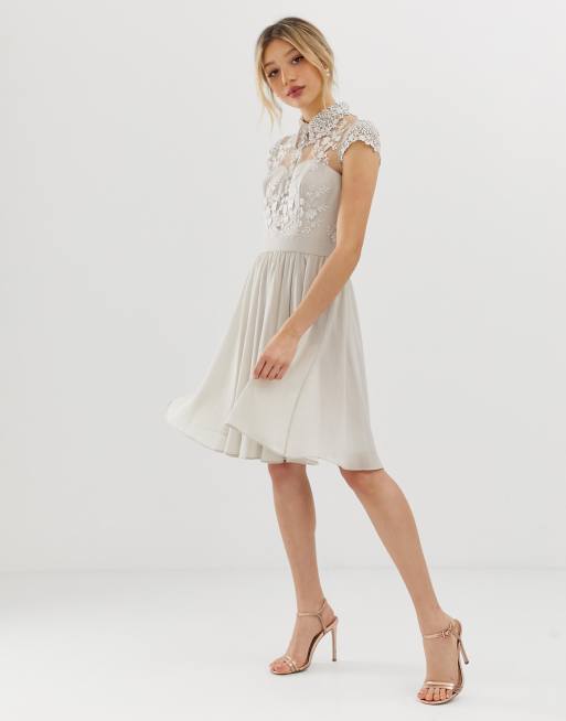 Chi Chi London Mink Lace High Neck Skater Dress Dorothy Perkins