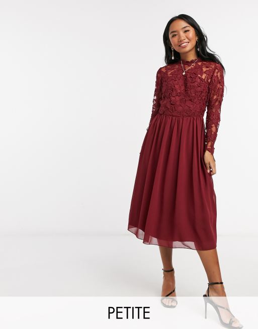 Chi Chi London Petite Langarmliges Midikleid Mit Spitze In Bordeaux Wamsi