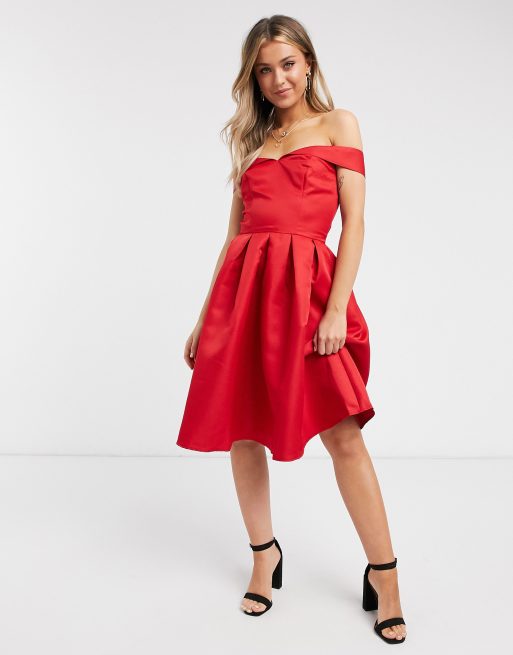 Chi Chi London Petite Midikleid Mit Carmen Ausschnitt In Rot Iebem Morelos
