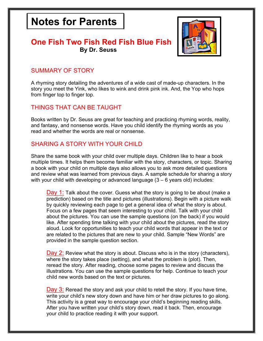One Fish Two Fish Red Fish Blue Fish Lesson Plan For Pre K 2nd Grade Lesson Planet
